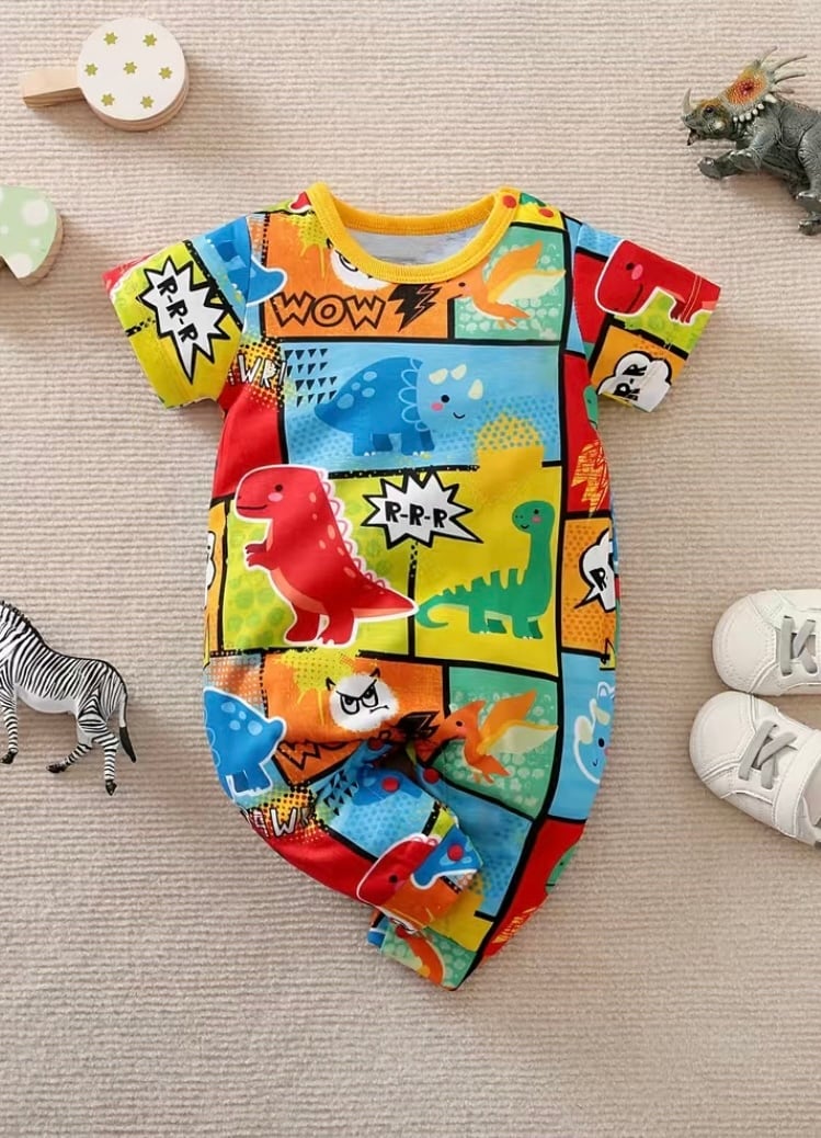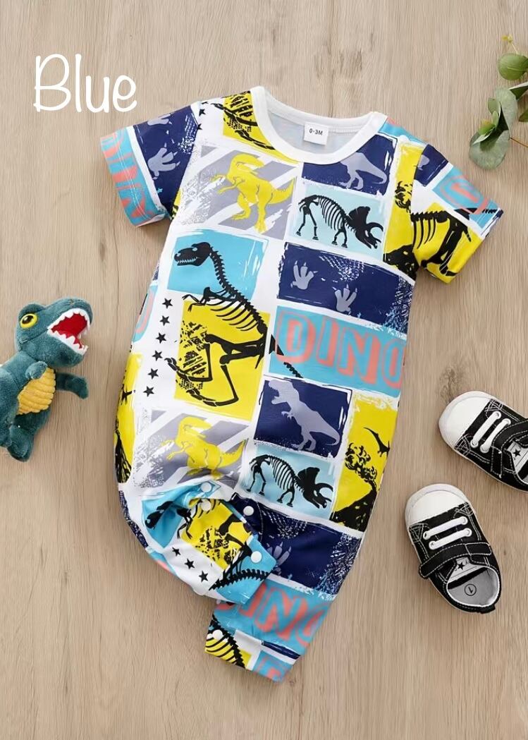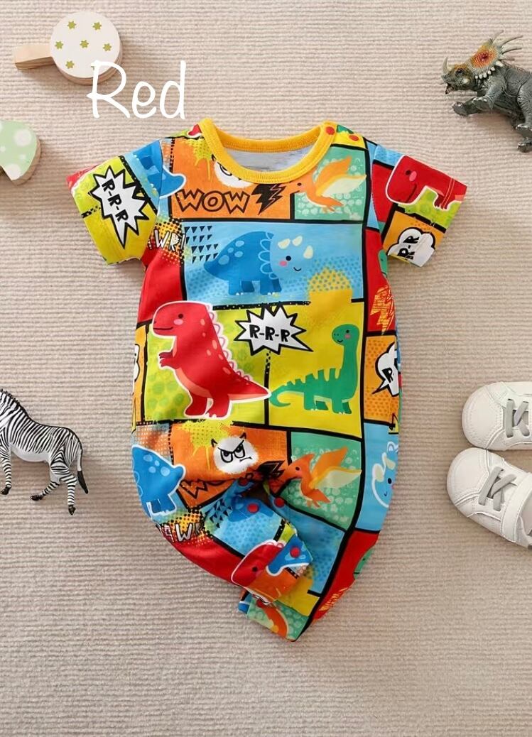 ロンパース ボーダー 恐竜 漫画 半袖 春服 春 保育園 幼稚園 外出用 男の子 boy ボーイ ベビー ベビー服 子供服 子ども 子ども服 子供 可愛い カワイイ 62cm 68cm 74cm 80cm 86cm レッド ブルー